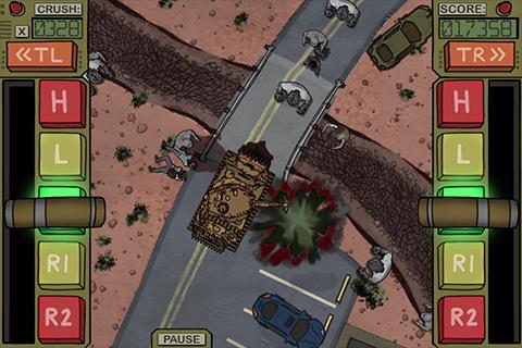 In either mode you can swing your custom "Turret Axe" around left or right with independent turret buttons. Crushing with the "Turret Axe" both keeps Zombies back from your Tank, and also earns you even more Cash! Beware there are many different types of Zombies each with their own unique abilities! For example the "Crawlers" will go right under your "Turret Axe", but they are very slow. As you play you will learn the strengths and weaknesses of each Zombie type! Zombie Crush also has 40 achievements to go after, as well as the ability to score more points by delivering "Super Crush Combos"! Round them up, and Crush them!!!