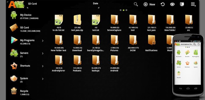 AndroXplorer Pro is a file Manager that enables you to protect and compress your mobile device's data. AndroXplorer Pro is intuitive, extremely user friendly, features-rich and sophisticated. It also supports rooted device.