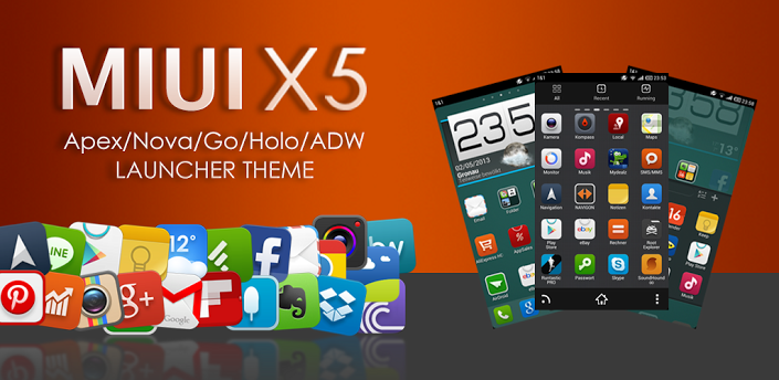 MIUI X5 HD Theme for Apex Launcher, Nova Launcher, ADW Launcher, Holo Launcher, Go Launcher, Atom Launcher and many other Launcher!